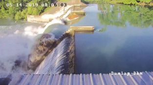 No momento em que a barragem cai em Dunlap Lake perto de New Braunfels, Texas.