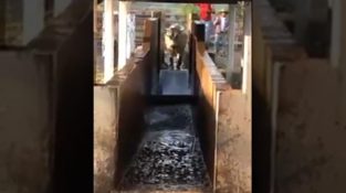 Em uma fazenda de vaca, uma vaca deve ser colocado dentro de um tanque de água contendo insecticida para os insectos e pulgas. A tentar saltar por cima do reservatório, a vaca vai cair diretamente [...]