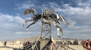 O cavalo alado mítico Pegasus em uma escultura cinética, que foi apresentado no Festival 'Burning Man' em Nevada, Estados Unidos.