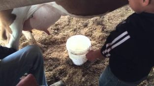 Eles levam o seu filho para ordenhar uma vaca e ver o que a criança diz