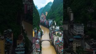 A cidade de Yanjin, na província de Yunnan, na China, é construído ao longo da foz do rio Guanhe, entre a água e falésias íngremes.