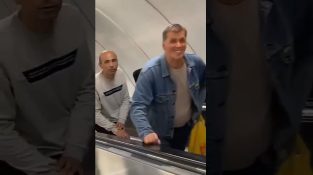 Usando um aplicativo em seu celular, alguém faz todas as pessoas na escada rolante sorrirem.