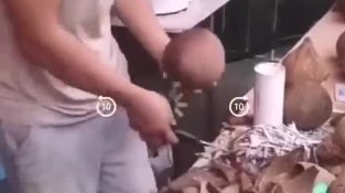 Dois pousos de cana nas mãos de uma mulher, usando as membranas do mamilo entre as pernas.
