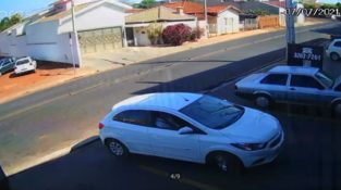 Depois de verificar se a estrada está livre, o cliente de uma garagem e um vizinho saem de seu estacionamento ao mesmo tempo. O incidente aconteceu em São Paulo, Brasil.