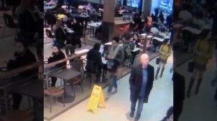 Uma mulher tropeça em uma placa que diz 'piso molhado' no corredor de um restaurante. Então ele removeu a placa de 'chato' do meio do corredor...
