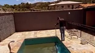 Um homem testa a bravura de seu cachorro caso alguém invada a casa. Os resultados não são animadores.