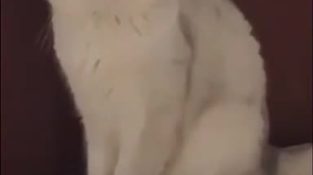 Um gato lembra um cachorro rude que é o chefe da casa.