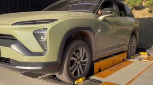 Uma estação de troca de bateria para os carros elétricos da montadora chinesa Nio. A mudança ocorre em cerca de 5 minutos e o carro entra na estação no piloto automático.