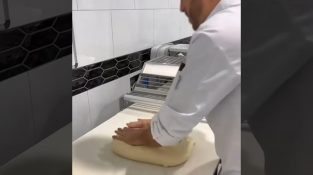 Um padeiro prepara e assa croissants de manteiga em uma padaria.