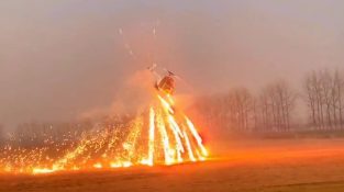 Em Bengbu, China, um piloto comemorou o ano novo lançando fogos de artifício de seu helicóptero. O homem amarrou alguns foguetes nos patins de seu helicóptero e lançou os foguetes para o ar.