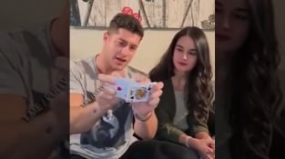 Um homem faz um pequeno malabarismo com baralhos de cartas, impressionar uma mulher.