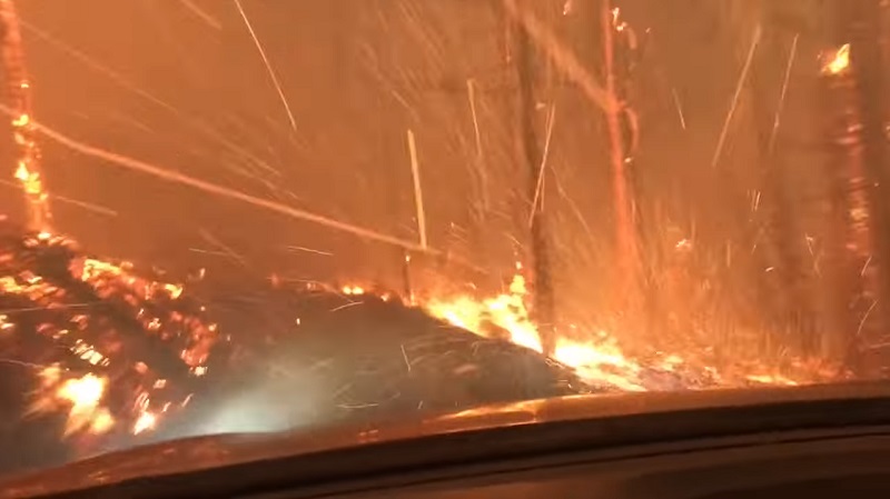 În timpul marelui incendiu din Parcul Național Glacier National Park din Montana Statele Unite ale Americii, de Justin Bilton, împreună cu tatăl său încearcă să părăsească pădurea cu mașina. Odată ce au ajuns la un punct în care focul a fost foarte intensă, Ei au fost forțați să se întoarcă (după sfârșitul video) au ajuns la malul unui lac. Au supraviețuit de doi gardieni în timp ce mașina lor a fost ars.