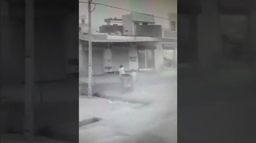 În timpul vânturile puternice din India, un om cuprins de un stâlp de metal pentru a păstra. Dar vântul va ridica întregul acoperiș de metal, împreună cu coloana și omul în aer.