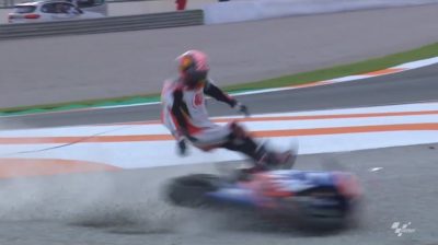 La duminică saptesprezecelea noiembrie 2019 în timpul Moto GP din Valencia, Spania, conducătorul auto Johann Zarco a fost lovit în picioare de o motocicletă. După o scădere, Zarco a primit pietriș și a văzut motocicleta lui spaniolul Iker Lecuona vine din. Zarco a părăsit pista pe o targă, Dar nu a fost ceva serios.