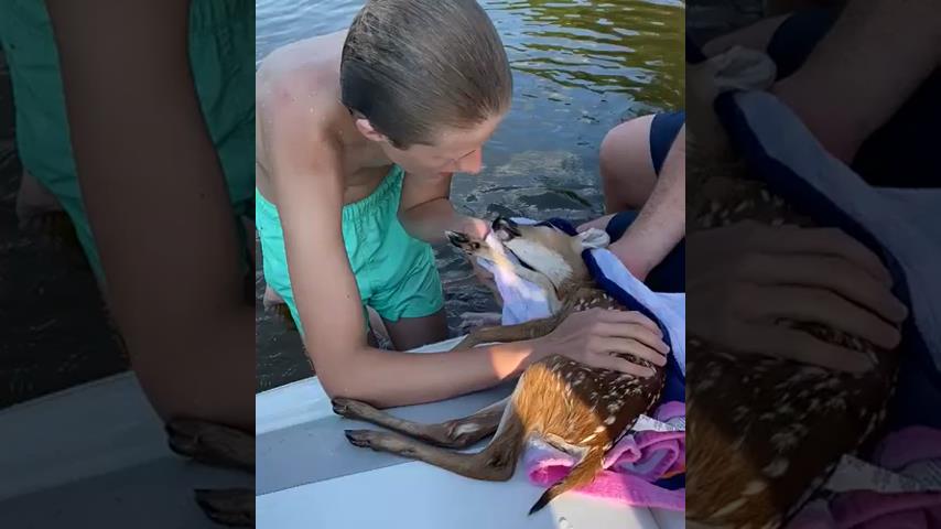Brian a făcut o plimbare cu barca pe un lac din Tyler, Texas, când a văzut o cerbă mică sângerând în apă. L-a scos repede, și cu ajutorul unui tânăr care se afla la fața locului, au încercat să-i ofere respirație artificială.