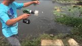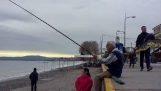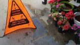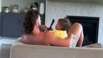 Un tată preia telecomanda scăpată cu ajutorul fiicei sale.