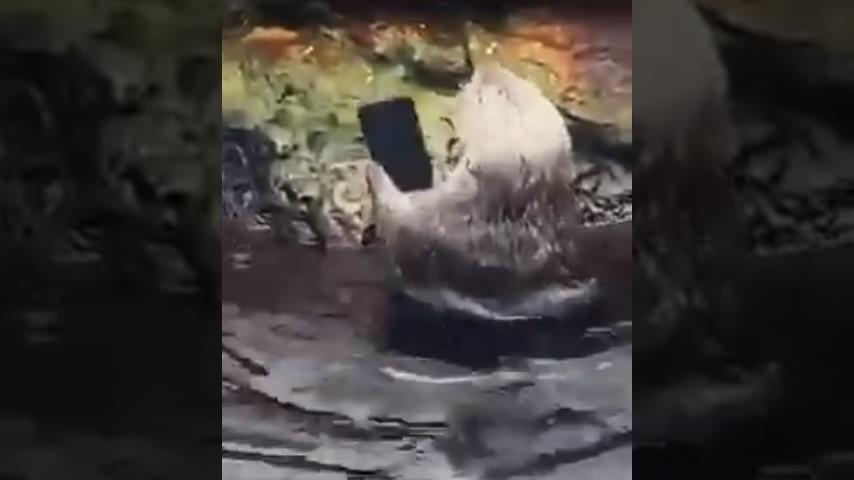 Într-o grădină zoologică, Un vidră a găsit iPhone -ul unui vizitator în apă, Și încerca să -l rupă, crezând că este o coajă.