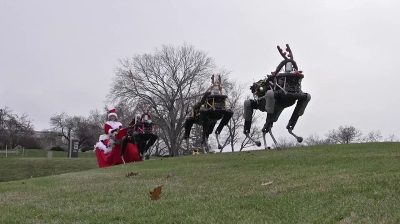 Boston Dynamics, o companie americana, care este cunoscut pentru activitatea în domeniul Robotica pentru uz militar, ne Craciun fericit cu o sanie se deplasează de quadrupedal robot vigoare, în loc de tarandoys tradiţionale.