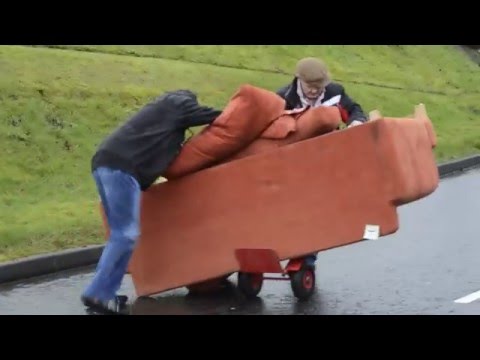 În Irlanda de Nord, doi oameni se deplasează pe o canapea.