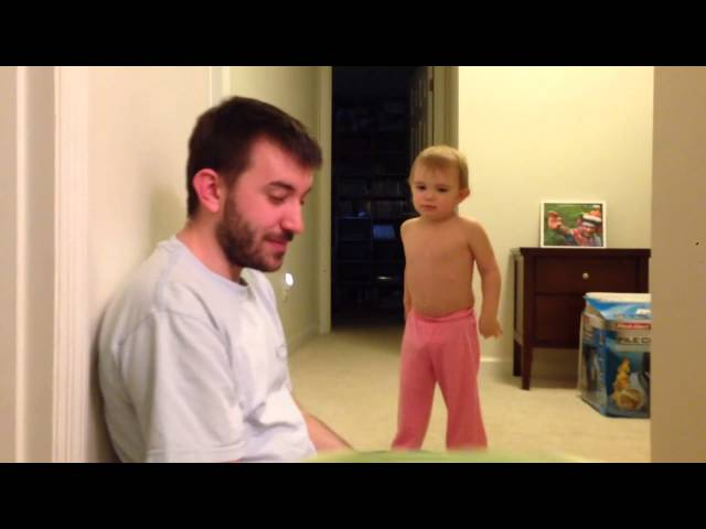 Un băiat mic se apropie de tatăl său pentru o scurtă luptă cu o pernă, dar el veţi reuşi cu precizie de un lunetist.