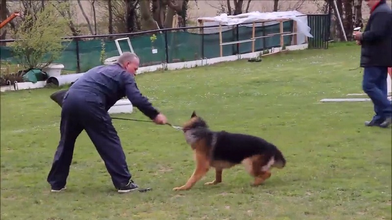 În studiile din Calais, Franta, un Ciobanesc German tineri nu înţeleg corect da din cap de un mentor şi face o greşeală. Câinele de 8 luni a fugit la momeală pentru a mușca mâna antrenorului, dar a făcut o greșeală și a încercat să se întoarcă la punctul de plecare. Instructor luat câinele cu furie de bandă şi l-au aruncat la pământ.