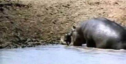 Un hipopotam încercarea de a salva o antilopă care este prins în fălcile unui crocodil.