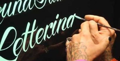 Caligraf Glen Weisgerber demonstrează o tehnica de caligrafie cu o perie şi mână de rotaţie. surprinzător!