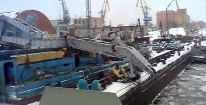 O macara de 100 de tone sa prăbușit în portul Kazan din Rusia, ca el încearcă să ia în jos o navă. Două longshoremen au fost foarte norocos în momentul accidentului, şi nu unul dintre ei a fost rănit.