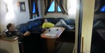 Echipajul unei nave care încearcă să se relaxeze în timpul unei furtuni mari.