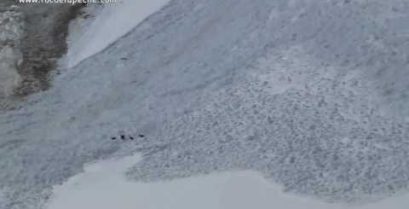 Un stol de agriokatsikwn (Capra neagra) încearcă să scape de o avalanşă de mari lângă la refugiu de la Pêche Roc, în Alpii francezi.