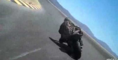 Acest motociclist scade atat de mult trupul său în timpul unui viraj, asa ca capul lui atinge asfalt