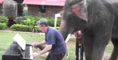 Un pianist joacă blues pian şi un elefant decide să-l însoţească. Videoclipuri din Sanctuarul de elefant din Thailanda Elephantstay.