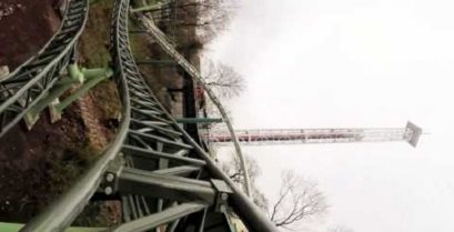 O plimbare cu trenul foarte rapid Helix, la Parcul de distracţii Liseberg, Suedia.