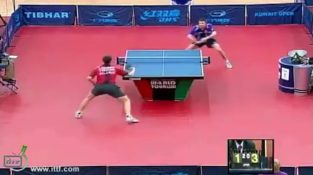 Robinot Quentin Frenchman surprinde Kiril Bielorusă Barabanov ping pong meci pentru Campionatul Mondial din Kuweit.