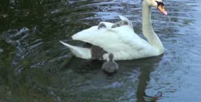 În Parcul zoologic din Anglia Kingfisher, vizitator surprinde o scenă foarte frumos cu şapte lebede mici pentru a încerca să se urce sus pentru o plimbare pe spatele mamei lor.