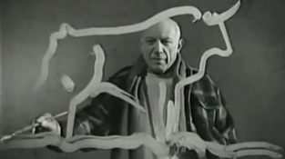 Un montaj cu diverse scene, înregistrate în timpul creării de opere de artă de către artist spaniol mare Pablo Picasso.