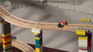 marmură cursa pe piesele trenul din lemn. Cine va câştiga?