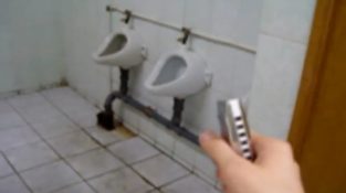O scenă inspirat de thriller, desfăşurare într-o toaletă publică.