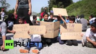 Un grup de refugiaţi blocat E75 autostrada conectarea Grecia şi Macedonia lângă Idomeni luni, cere ca acestea să poată continua călătoria lor spre Europa de vest. Imagini de scena prezinta drivere frustrat [...]