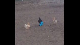 Charlie face cocoş plimbari cu mândrie în faţa găini. Pentru a deveni irezistibil pentru doamne, El purta pantaloni albastru nou.