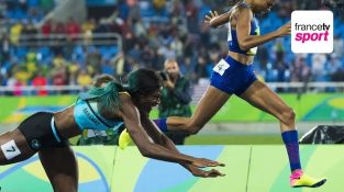 Luni 15 august 2016 în timpul finală a 400 de metri de femei la Olimpiada de la Rio, gimnasta Shaunae Miller din Bahamas Pass dip Alison american [...]