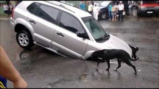 „Mașina a rămas blocată într-o groapă majoră. Pe măsură ce greutatea continuă să pună presiune pe beton, acesta cade mai adânc în deschidere.”
