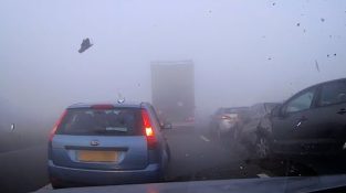 Bunicu o de trei a dezvăluit terifiante dashcam picior de momentul în care soţia sa 'inselat moartea'în o pile-up de autostradă din cauza grave de ceaţă