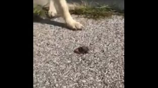 Un caine salvează viermi pe bitum de uşor să le pună în iarbă