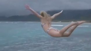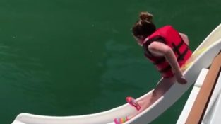 Încercarea de a face un diapozitiv de la un iaht în mare, fata asta se va confrunta cu o problemă neobișnuită.