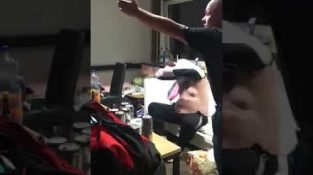 Drama unui om din Polonia, care încearcă să poarte tricoul, dar el nu a observat că această exploatație nu este chiar bluză.
