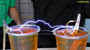 Două pahare de apă deionizată sunt plasate cu o mică distanță între ele, și apoi o înaltă tensiune de sarcină electrică pozitivă este aplicată într-o sticlă și o sarcină negativă la celălalt. În special tendință, a format un [...]