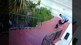 Doi câini mici, care merg pe scări cu seful lor, atunci când cineva se va poticni pe ultima treaptă și se va rula pe trotuar. Omul se execută pentru a obține câinele în brațe și [...]