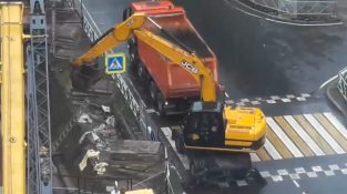 În timpul lucrărilor de pe o stradă Yaroslavl oraș în Rusia, operatorul unui excavator transporta aer la tamburul mașinii.