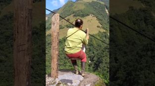 Fermierii din Acacías, Columbia folosesc acest scripete pentru a traversa un defileu mare și a ajunge în oraș.